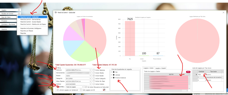 Con un doble clic en la grilla de gestores de Pretor CMS, accedes instantáneamente a los casos filtrados específicamente para el gestor seleccionado, asegurando una gestión precisa y eficiente. Además, la opción de explorar legajos por Tipo de Juicio, como Ejecutivo, Convocatoria de Acreedores u Ordinario, ofrece una clasificación clara y directa.