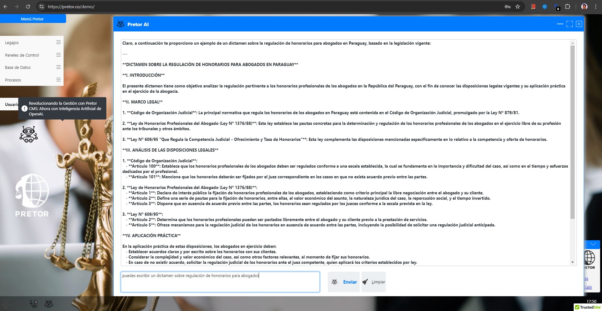Aliado Estratégico. Pretor CMS no es solo una herramienta de gestión; es un aliado estratégico en la era digital para estudios jurídicos y gestores. Su enfoque en la personalización, análisis avanzado y facilidad de uso lo convierte en una opción indispensable para aquellos que buscan optimizar sus procesos legales.